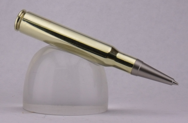 This fun little bullet casing pen extends the mini refill by twisting the nib |